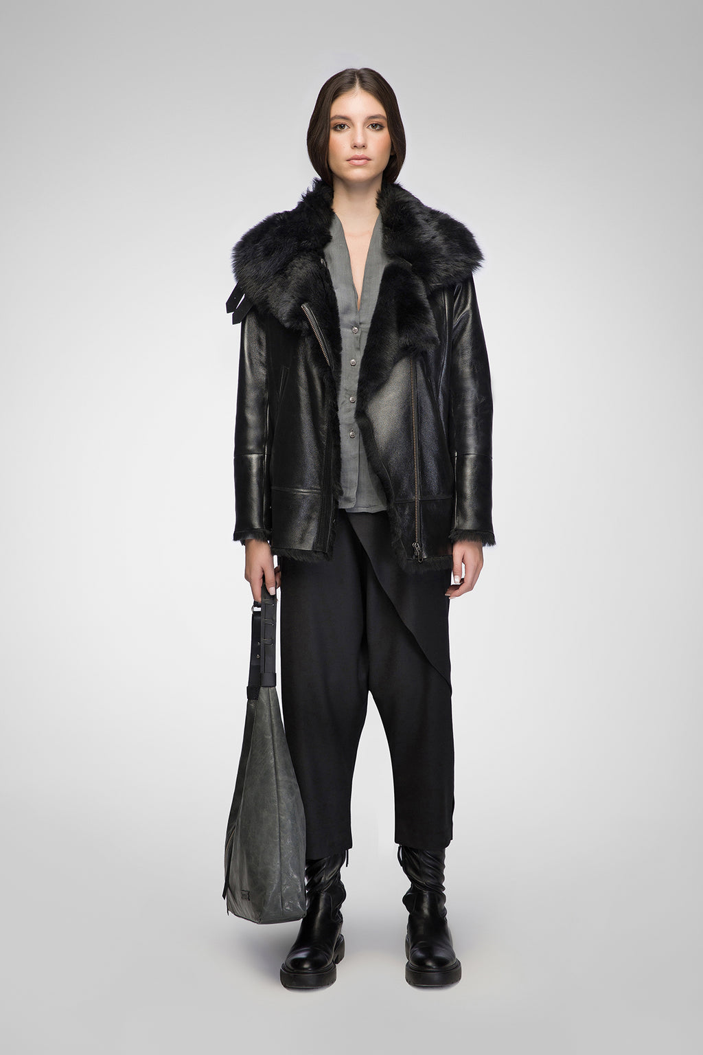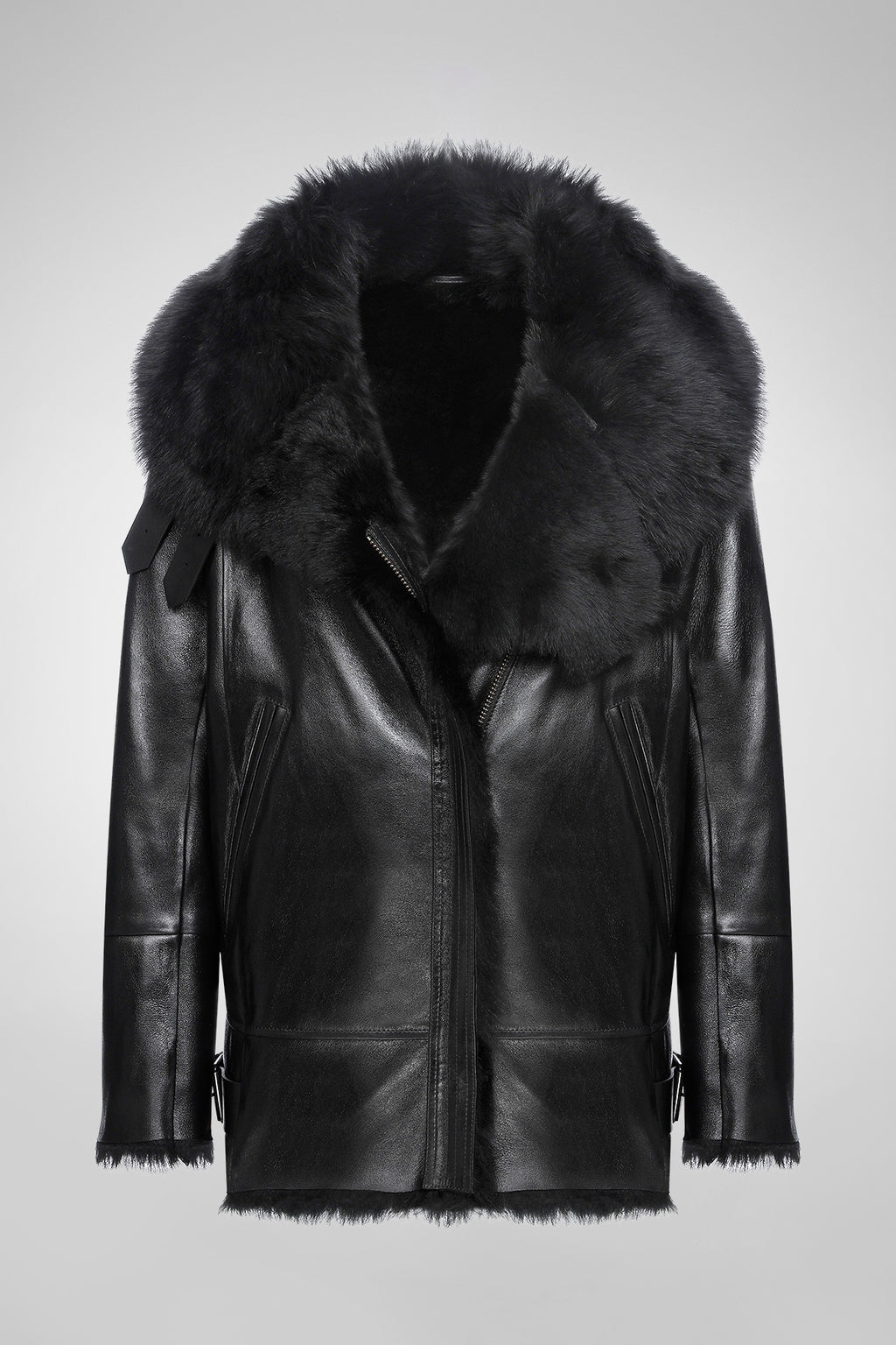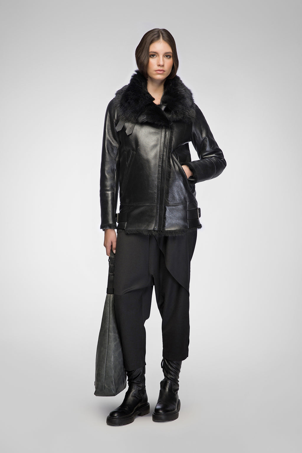 Vesna – Clotho Schwarze Lammfelljacke