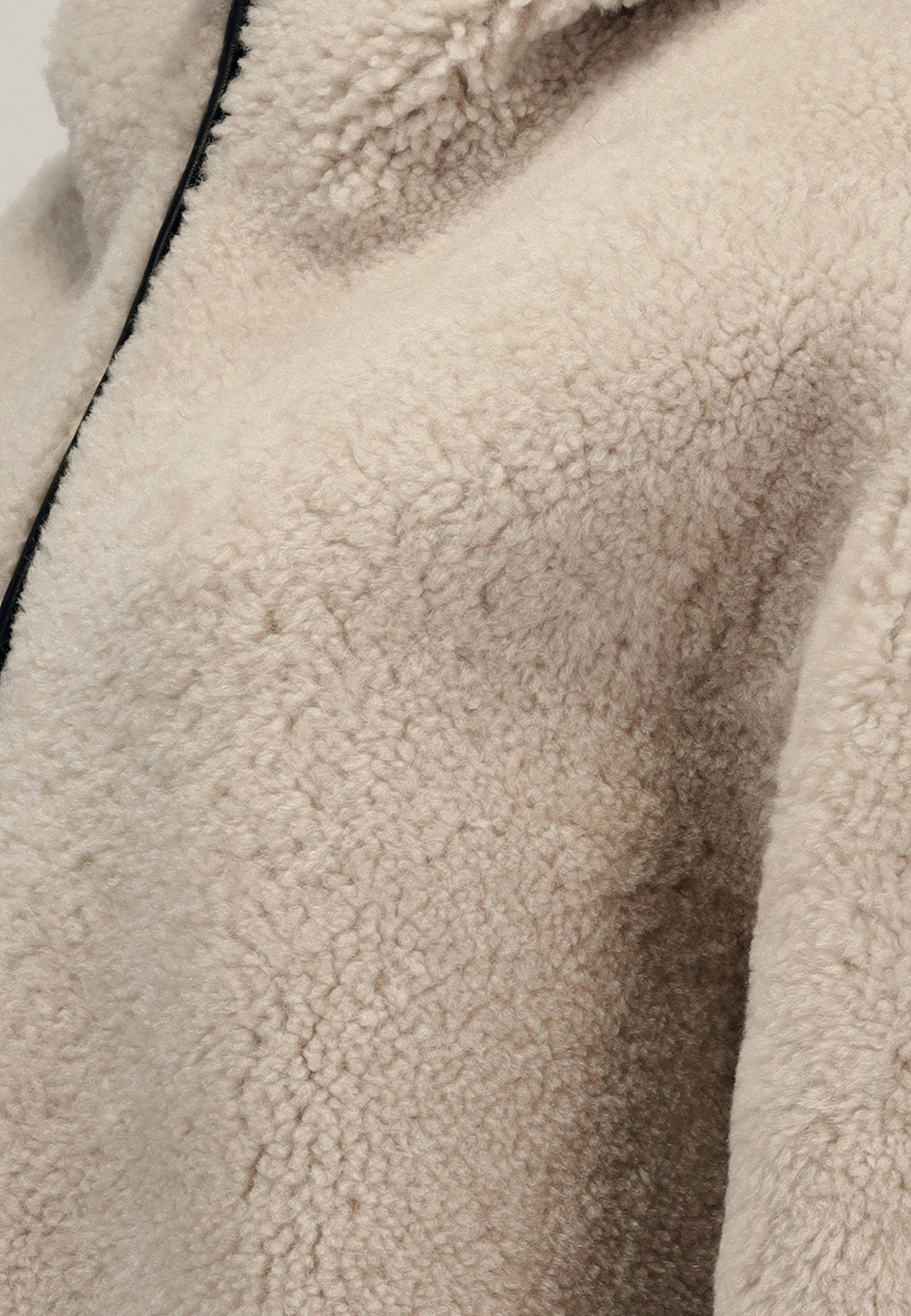 Dieser doppelseitige Shearling-Parka aus 100 % Lammleder verfügt über einen Reißverschluss vorne und Seitentaschen. Er ist knielang, hat eine normale Passform und eine leicht taillierte Silhouette für eine schmeichelhafte Figur.