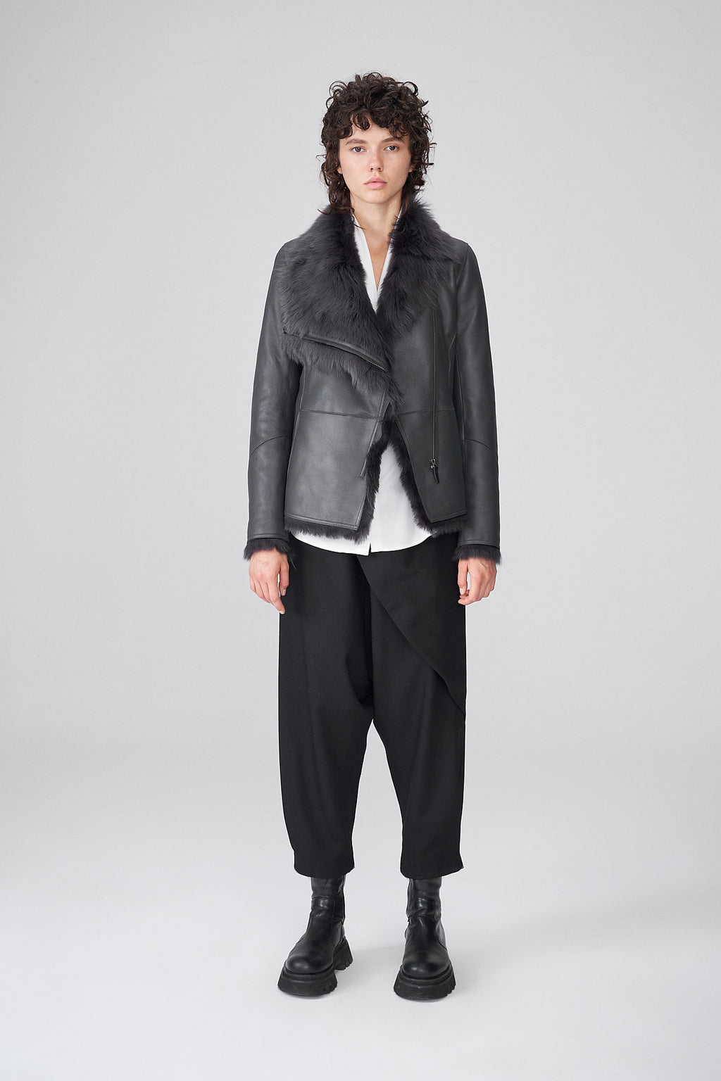 Adila – Clotho Anthrazitfarbene Jacke aus seidigem Lammfell