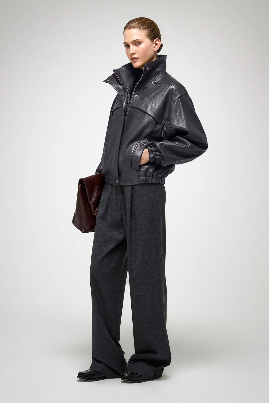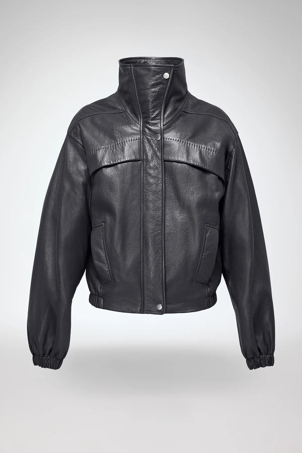 • Da Leder ein natürliches Material ist, muss es in trockener Umgebung atmen. Bitte bewahren Sie Lederbekleidung auf gepolsterten Kleiderbügeln auf und bedecken Sie sie mit einem einfachen Bettlaken oder einer Stoffmanteltasche.