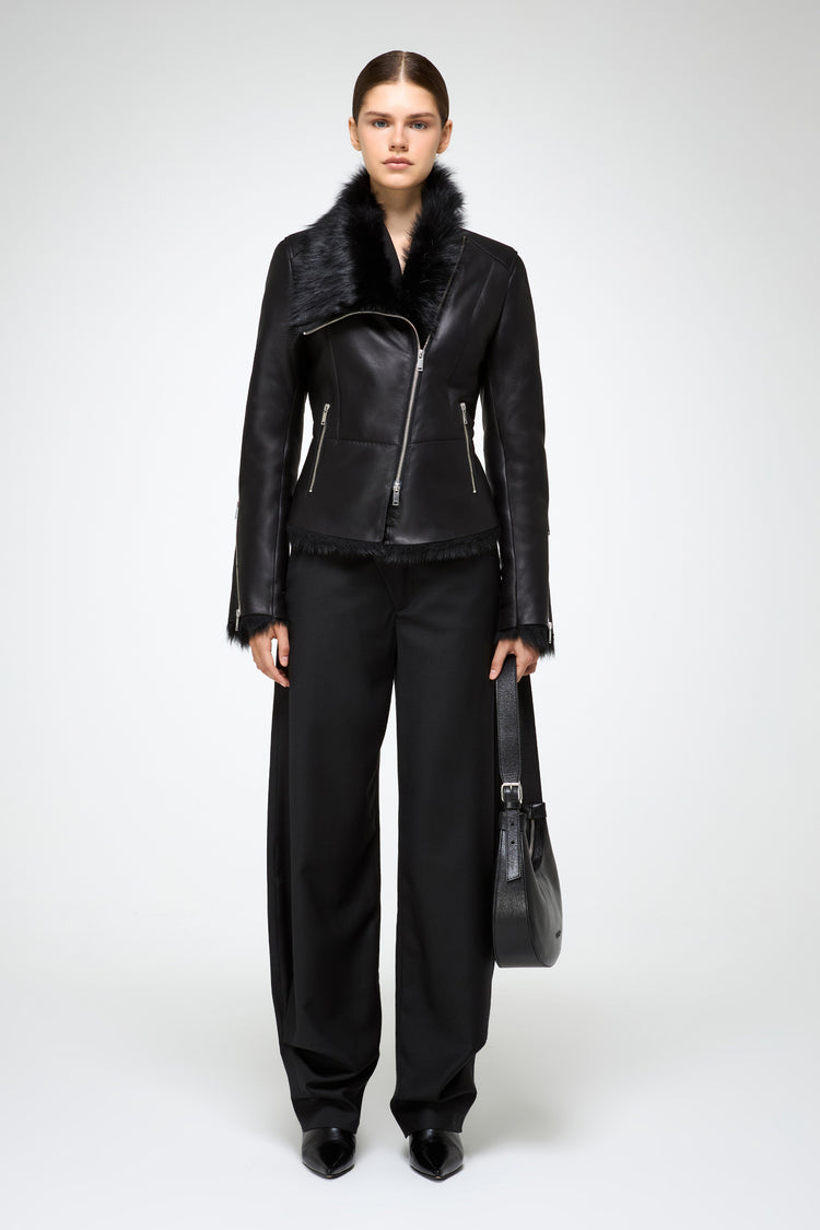 - Leder- oder Wildlederjacken sollten nicht bei Regen oder Schnee getragen werden, da durch Regen und Schnee erhebliche und irreversible Schäden verursacht werden können.