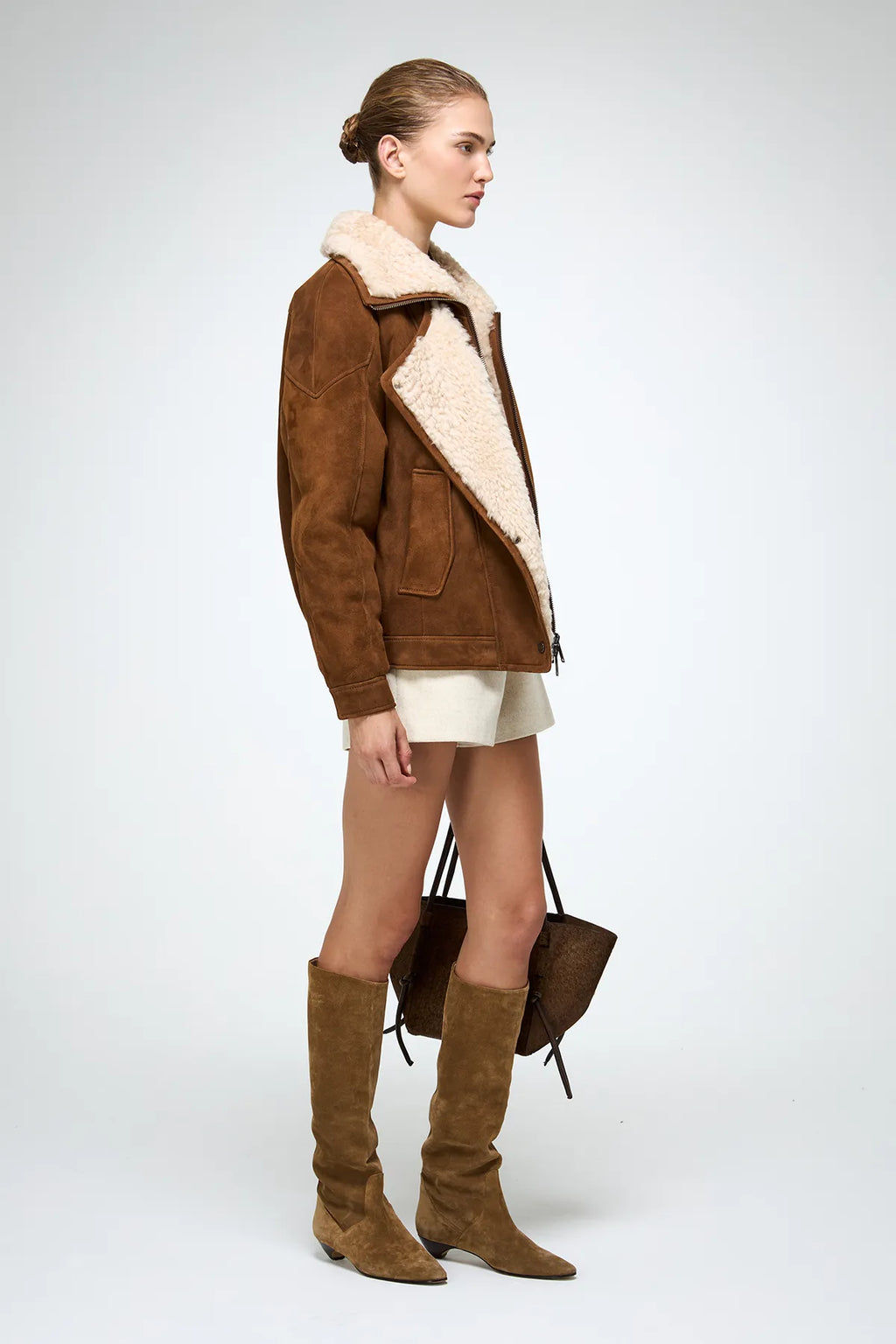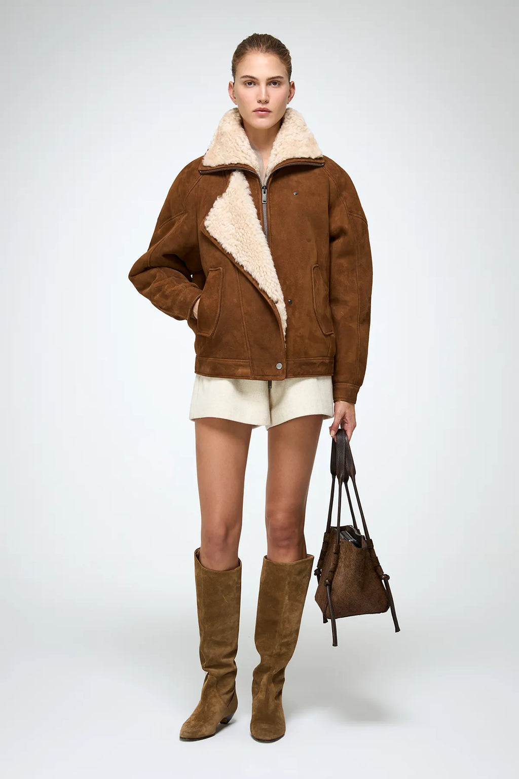 - Sollte Ihre Leder- oder Wildlederjacke dennoch mit Regen oder Schnee in Berührung kommen, werfen Sie sie nicht in den Trockner und versuchen Sie nicht, sie mit einem Fön zu trocknen. Darüber hinaus müssen Sie sie von direkten Wärmequellen fernhalten, da die direkte Wärme das natürliche Material schädigt. Stattdessen empfehlen wir Ihnen, das feuchte Stück an einem Ort mit viel Licht und Luftstrom aufzuhängen, damit es von selbst trocknen kann.