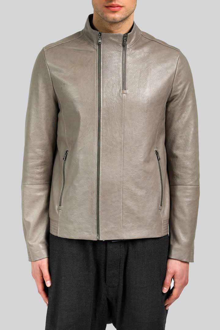 • Slim-fit Lederjacke mit Mandarinkragen und Reißverschlussdetail am Hals. Reißverschluss und Taschen.