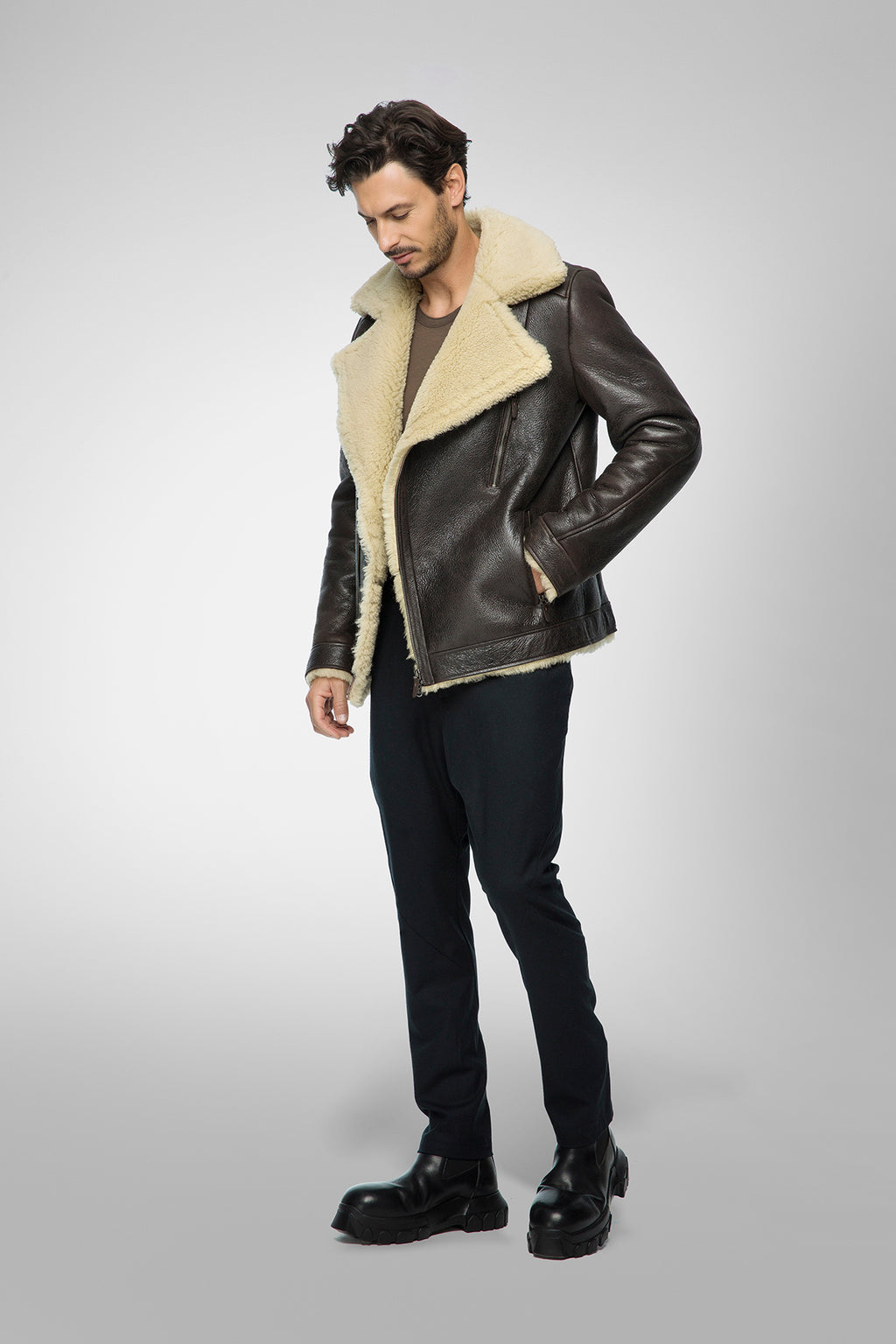 Tristan – Braun-beige Shearling-Jacke