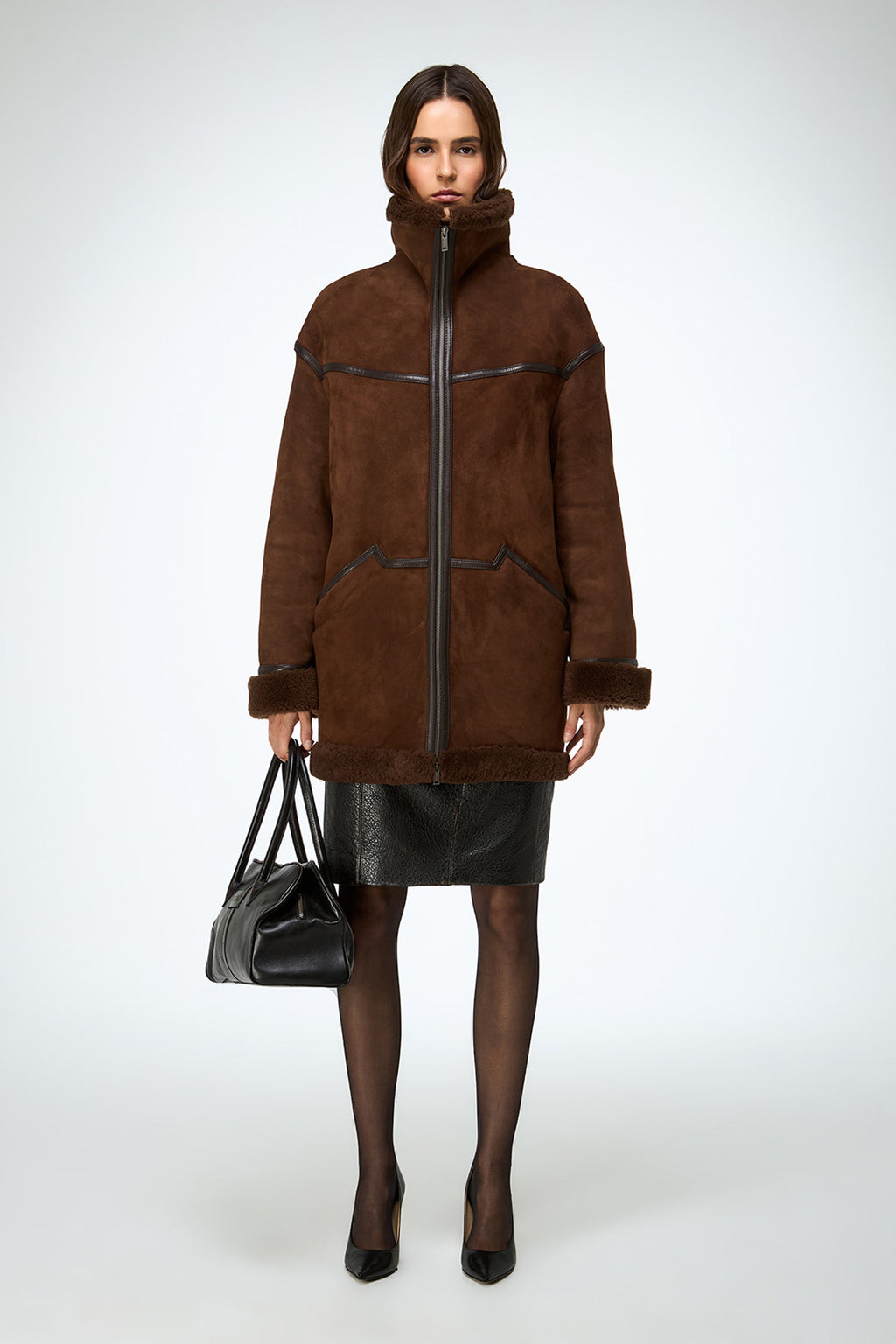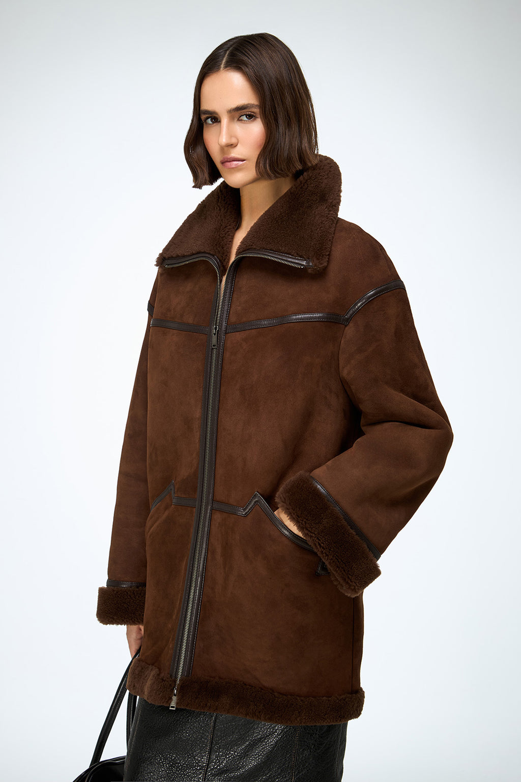 Material: 100 % echtes Lammfell. Wir sind Mitglied der LWG (Leather Working Group), um beste Umweltpraktiken in der Lederindustrie zu unterstützen und dazu beizutragen. Alle unsere Reißverschlüsse sind NATULON® ZIPPER, ein umweltfreundliches Produkt, das aus recycelten PET-Flaschen hergestellt wird. Für Etiketten und Verpackungen verwenden wir ausschließlich biologisch abbaubare Stoffe und Recyclingpapier. Das Model trägt Größe 34 (EU). Modelgröße: Größe 1,78/ Brustumfang: 81/ Taillenumfang: 63/ Hüftumfang: 90Model: KK52848