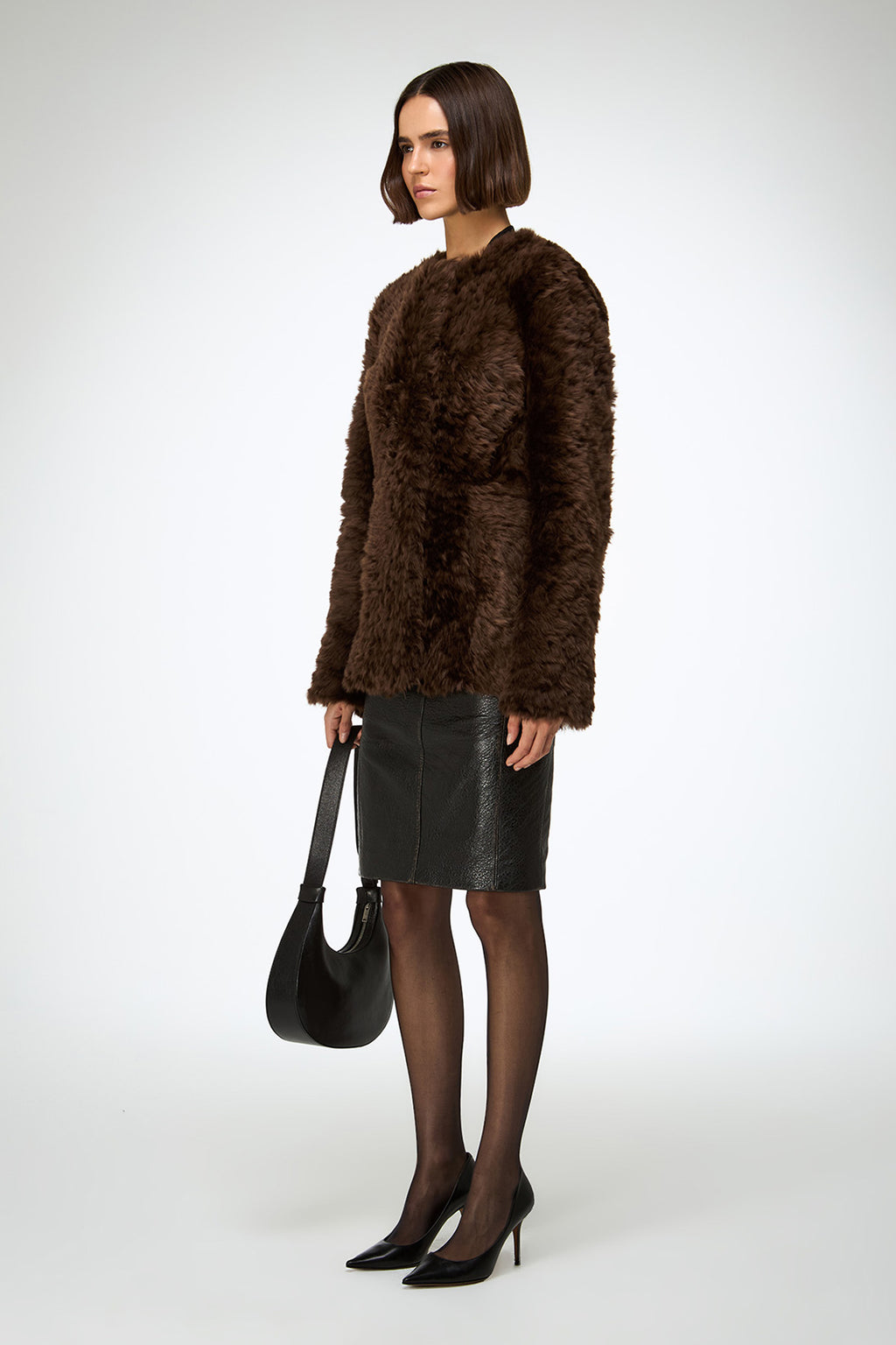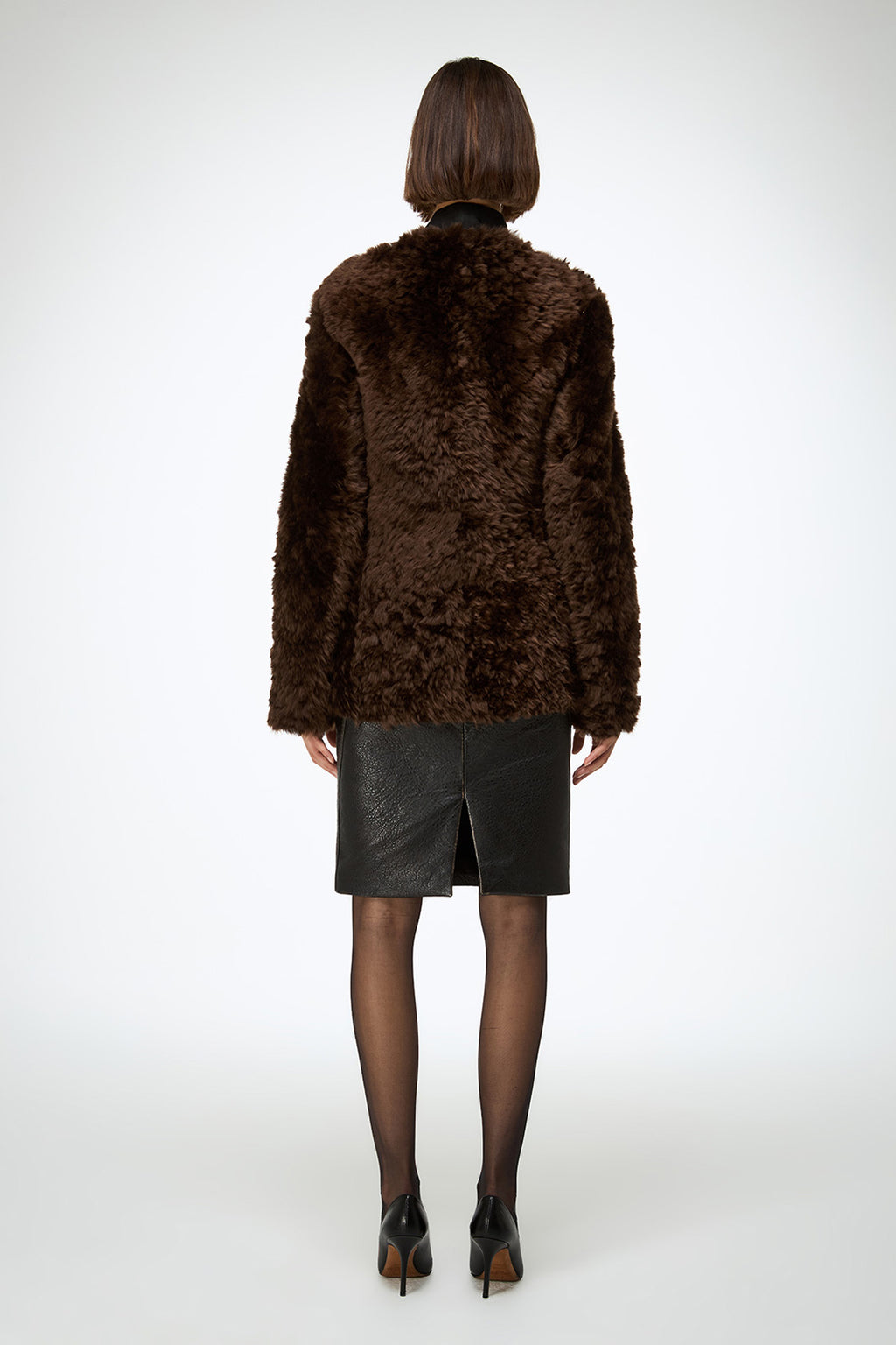 Crafted from 100% lamb leather shearling, this hip-length coat features a regular tailored fit, slip pockets, and leather-trimmed concealed snap fastenings. Designed with a round collar for a refined, minimal look.