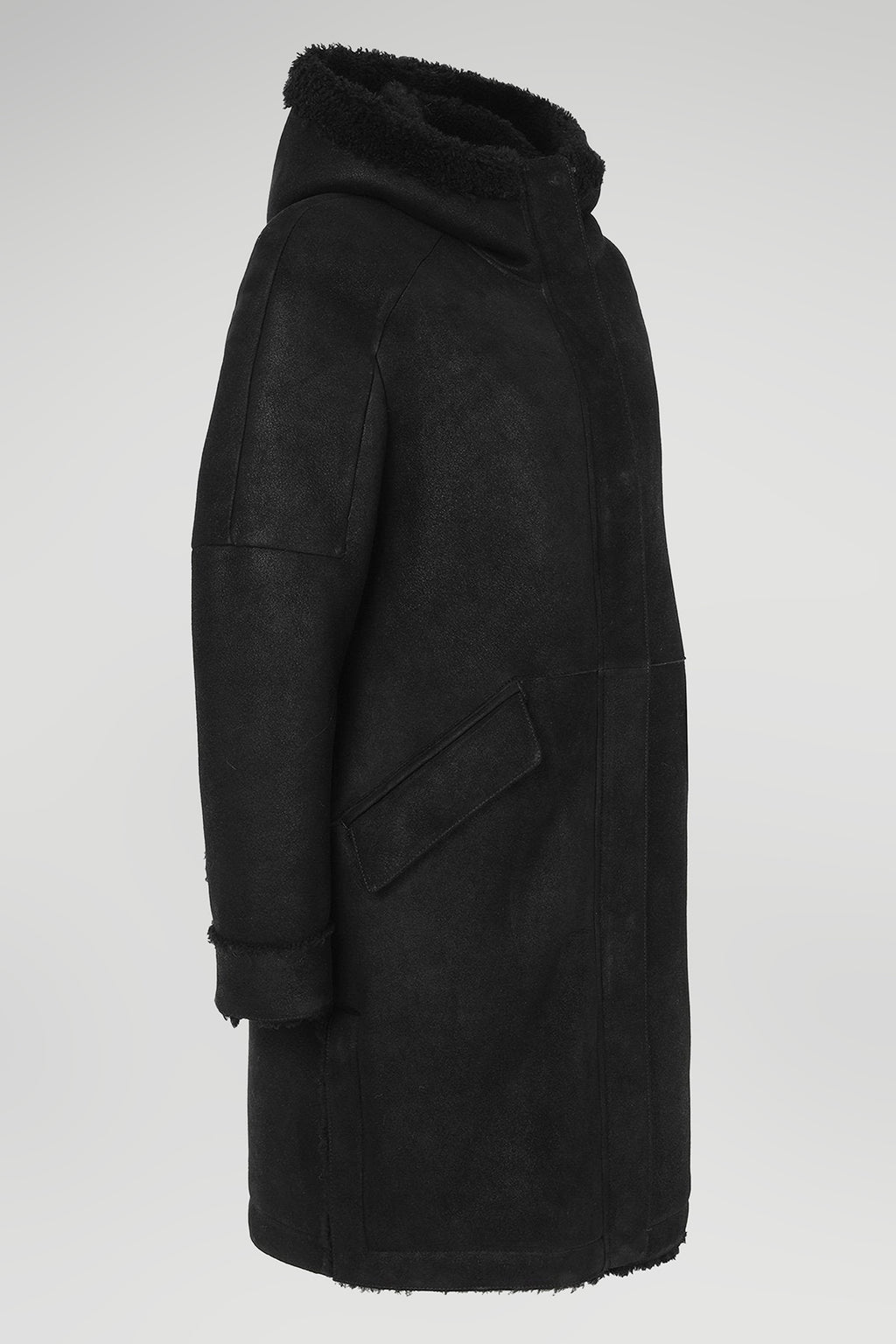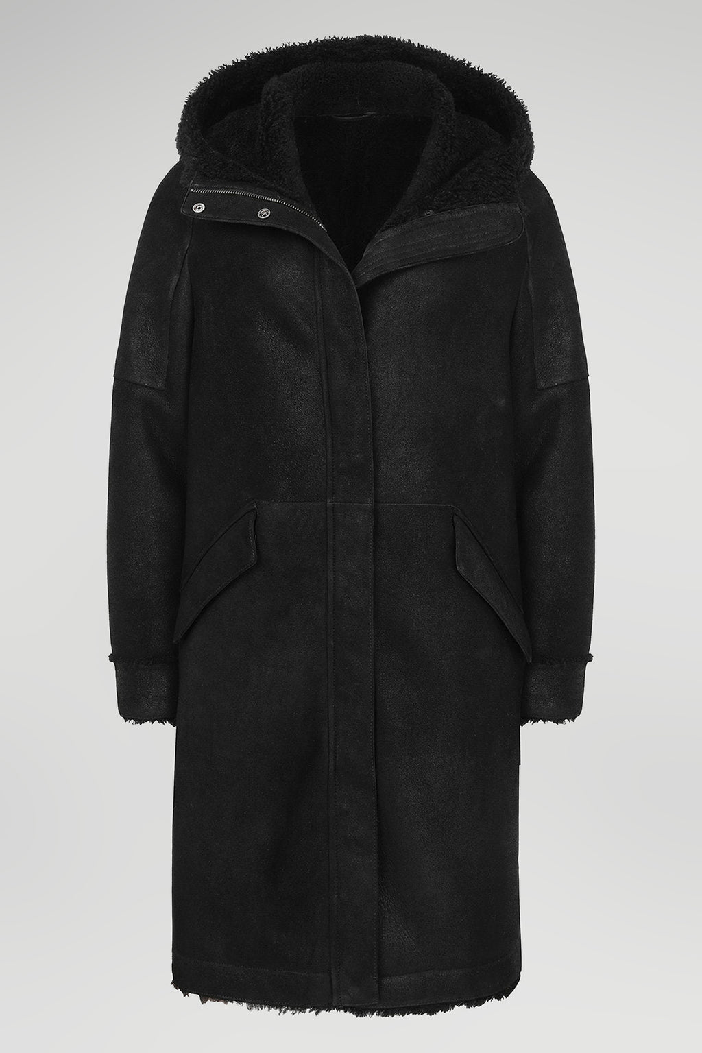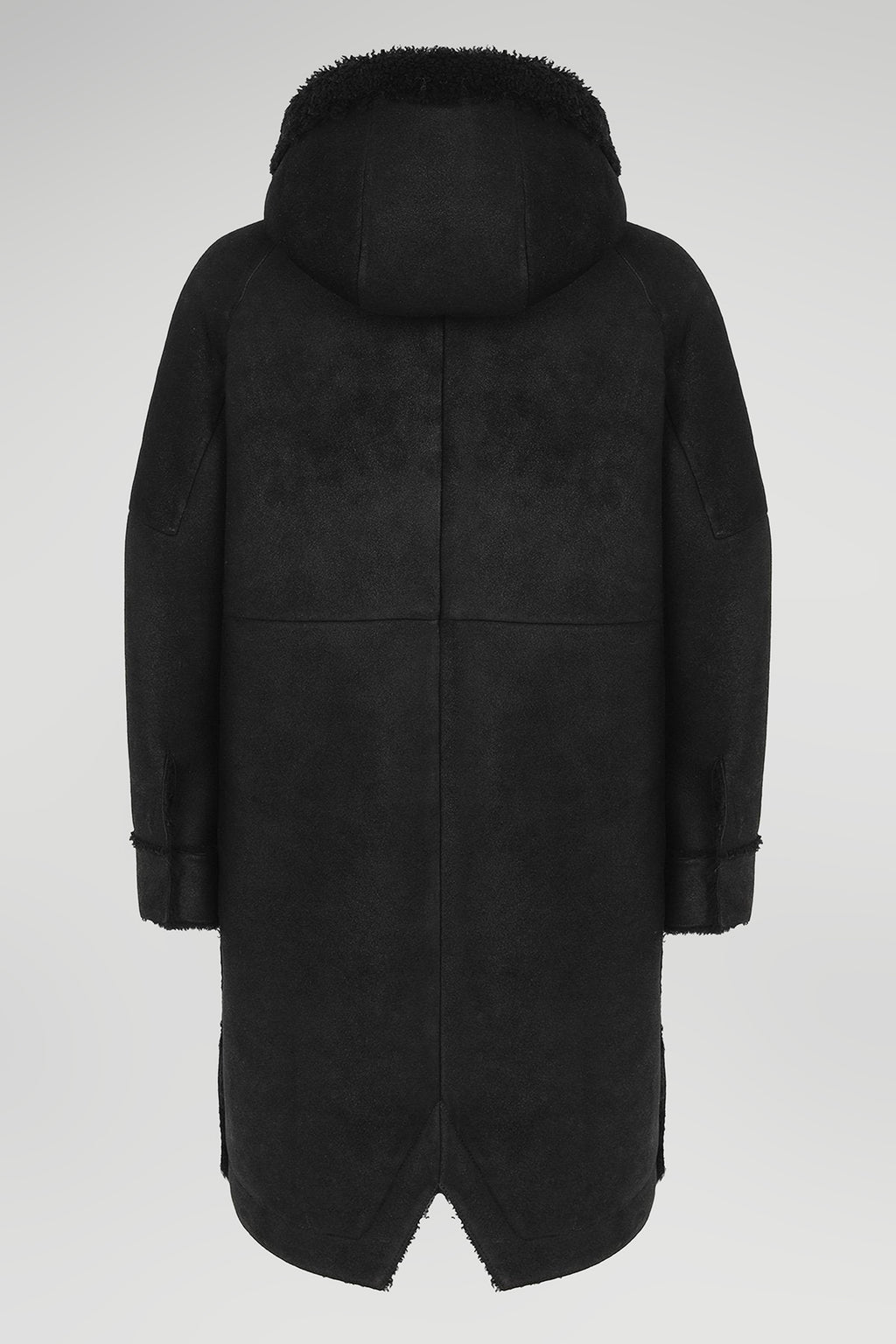 Der Mantel Adelyn ist aus weichem, wärmendem Shearling gefertigt und hat eine geräumige Silhouette mit großen Klappentaschen.