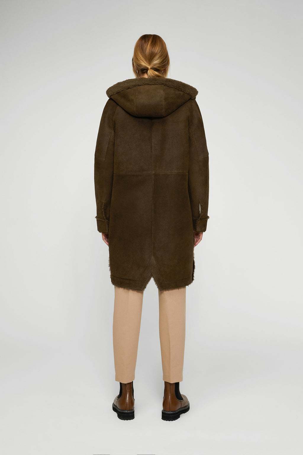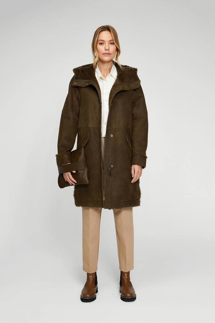 • Der Mantel Adelyn ist aus weichem, wärmendem Shearling gefertigt und hat eine geräumige Silhouette mit großen Klappentaschen.