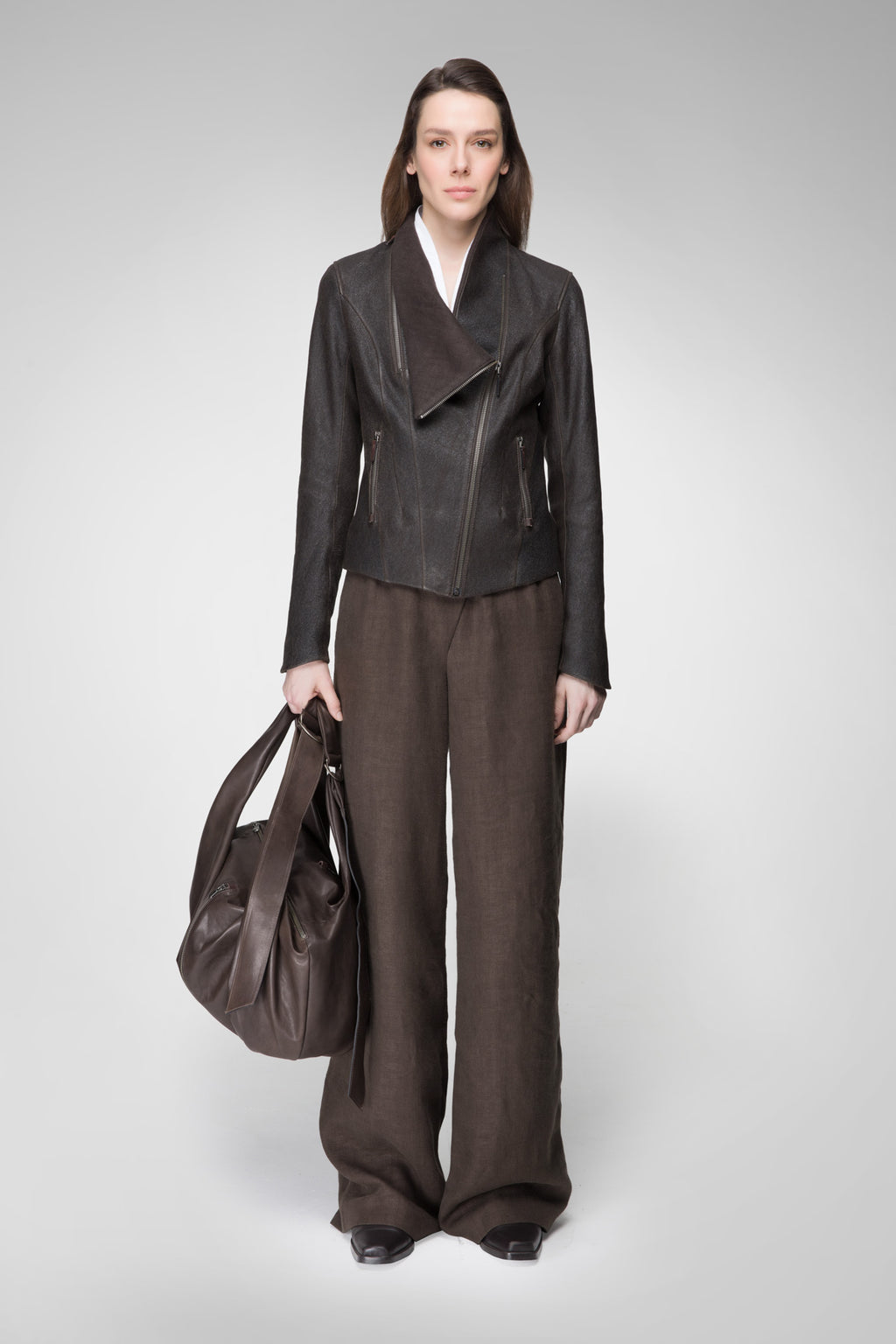 - Da Leder ein natürliches Material ist, muss es in trockener Umgebung atmen. Bitte bewahren Sie Lederbekleidung auf gepolsterten Kleiderbügeln auf und bedecken Sie sie mit einem einfachen Bettlaken oder einer Stoffmanteltasche.