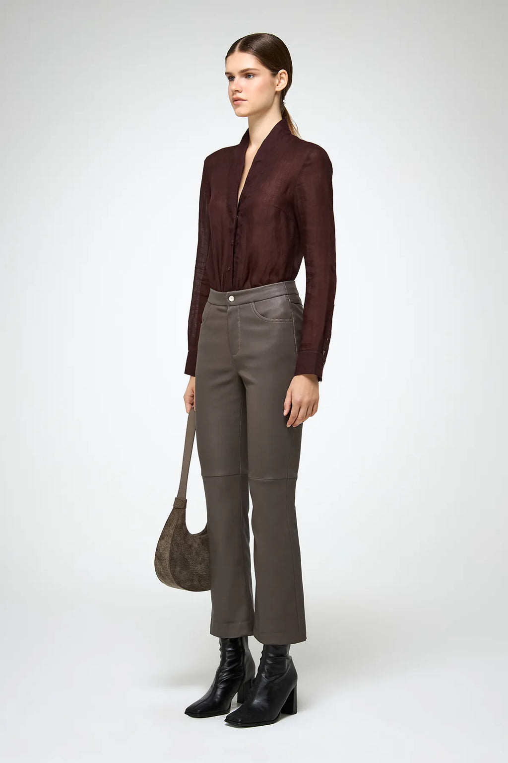 Knöchellange, kurze Lederhose im Jeans-Stil.