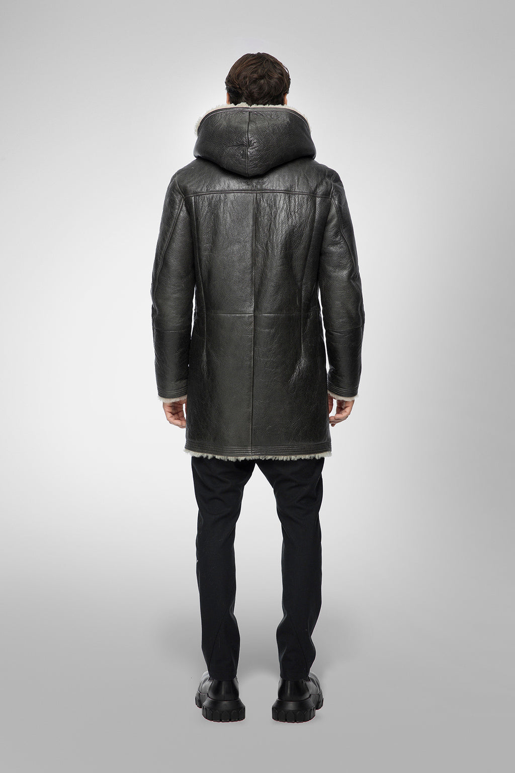 Mantel aus Shearling-Leder mit Reverskragen und flauschiger Textur. Innenfutter aus Shearling. Seitliche Eingrifftaschen. Knopfverschluss. Angenehm weich.