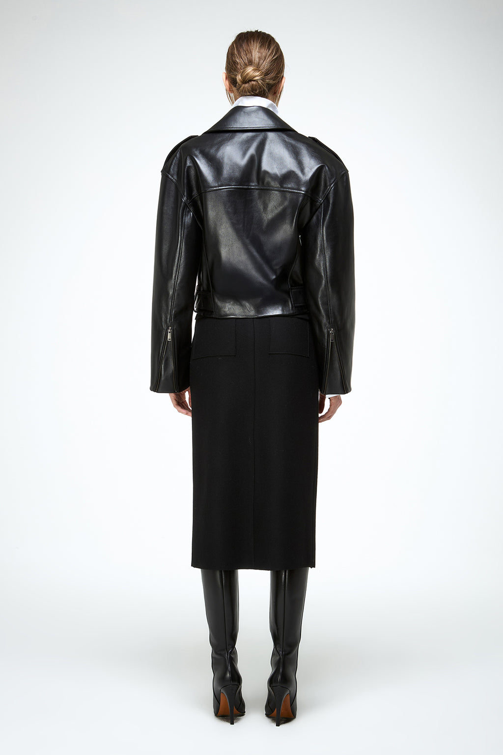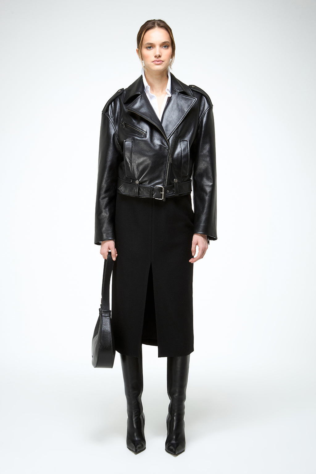 - Da Leder ein natürliches Material ist, muss es in trockener Umgebung atmen. Bitte bewahren Sie Lederbekleidung auf gepolsterten Kleiderbügeln auf und bedecken Sie sie mit einem einfachen Bettlaken oder einer Stoffmanteltasche.