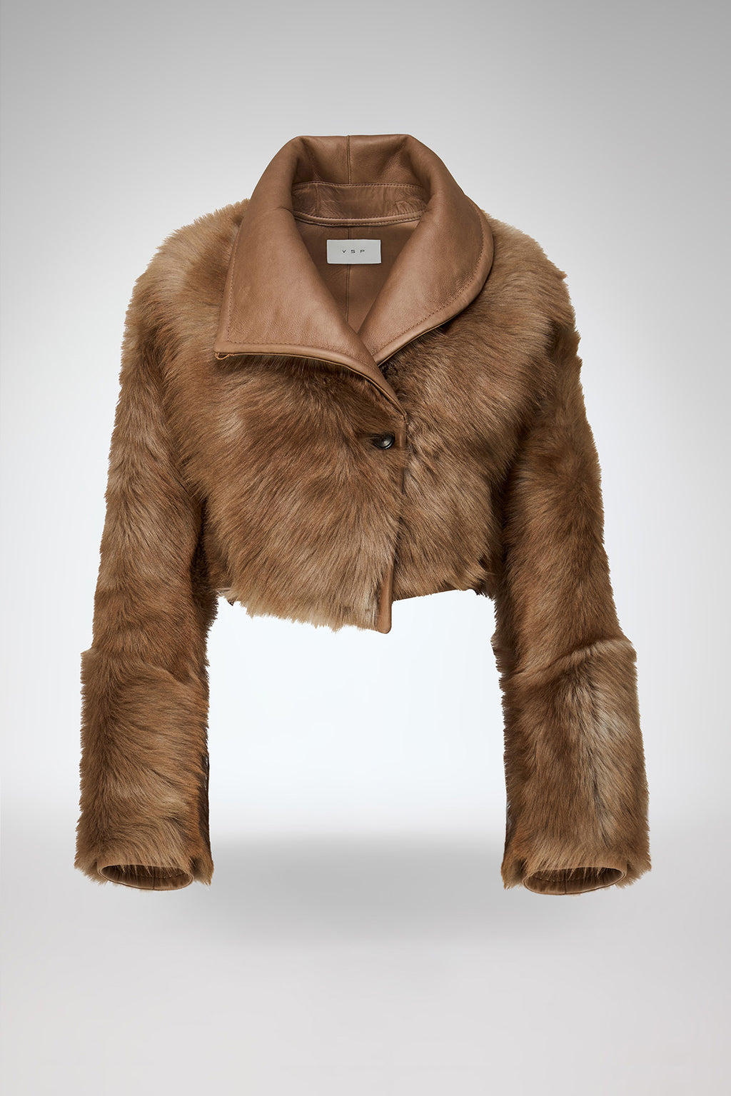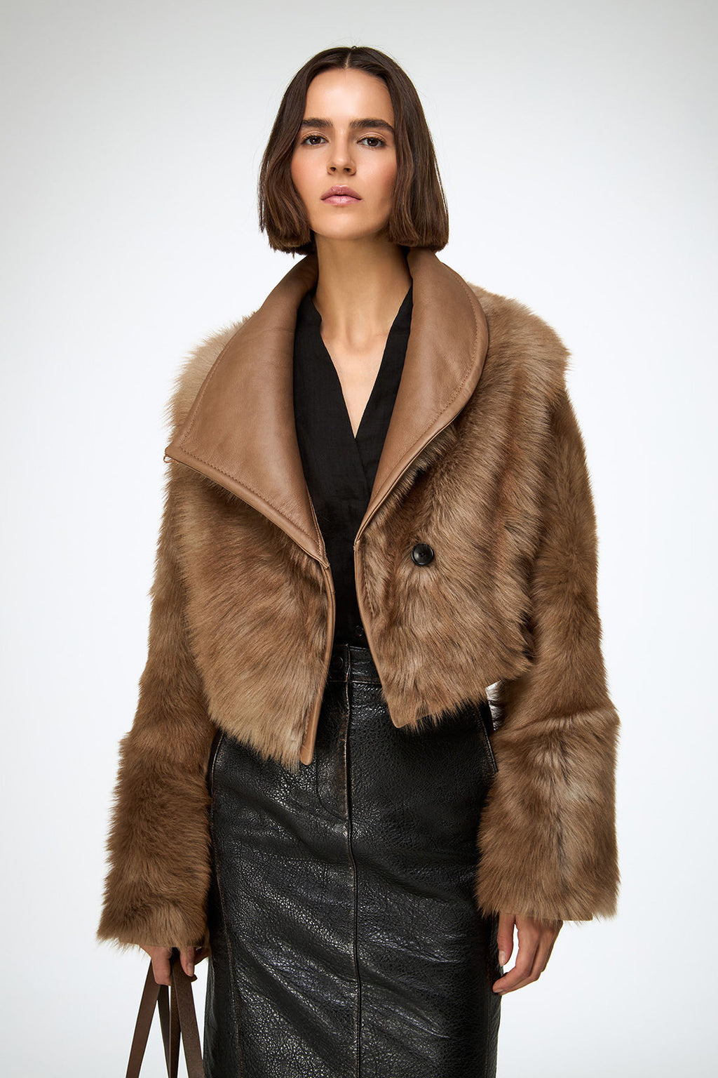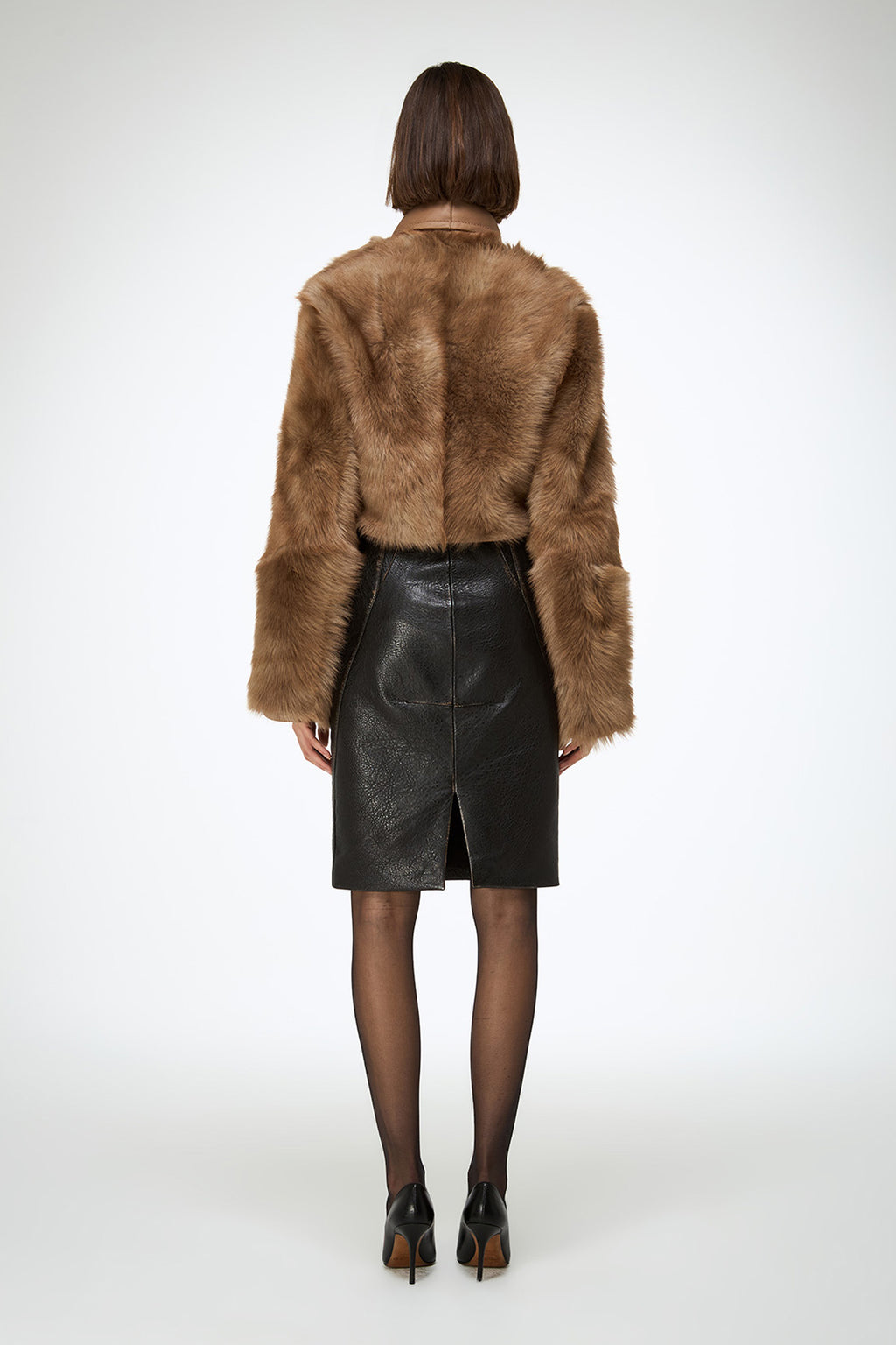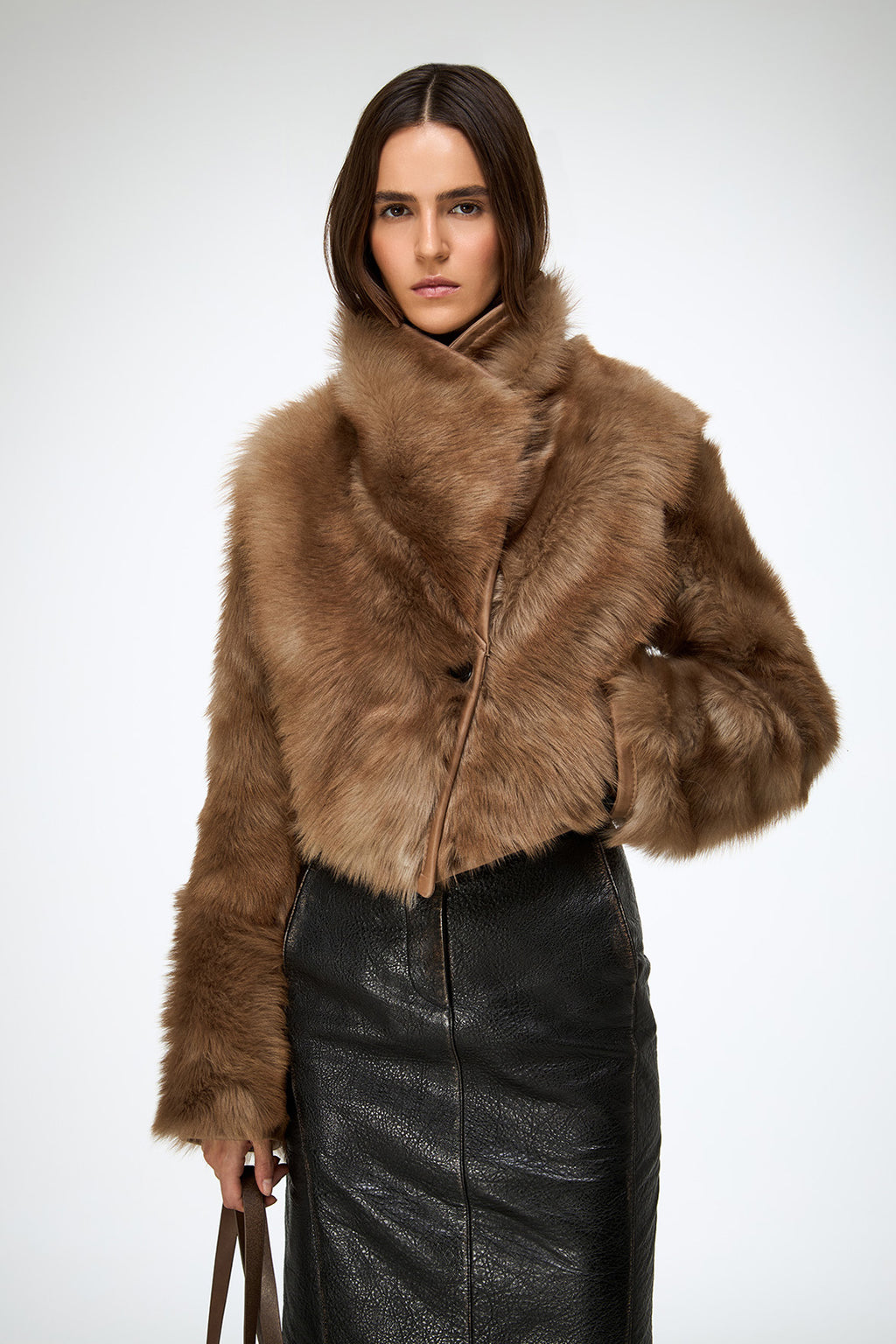 Aus weichem Lammfell gefertigt. Kurze Jacke mit Seitentaschen, Knopfverschluss und asymmetrischem Lederkragen mit Umschlag vorne. Taillierte Silhouette.