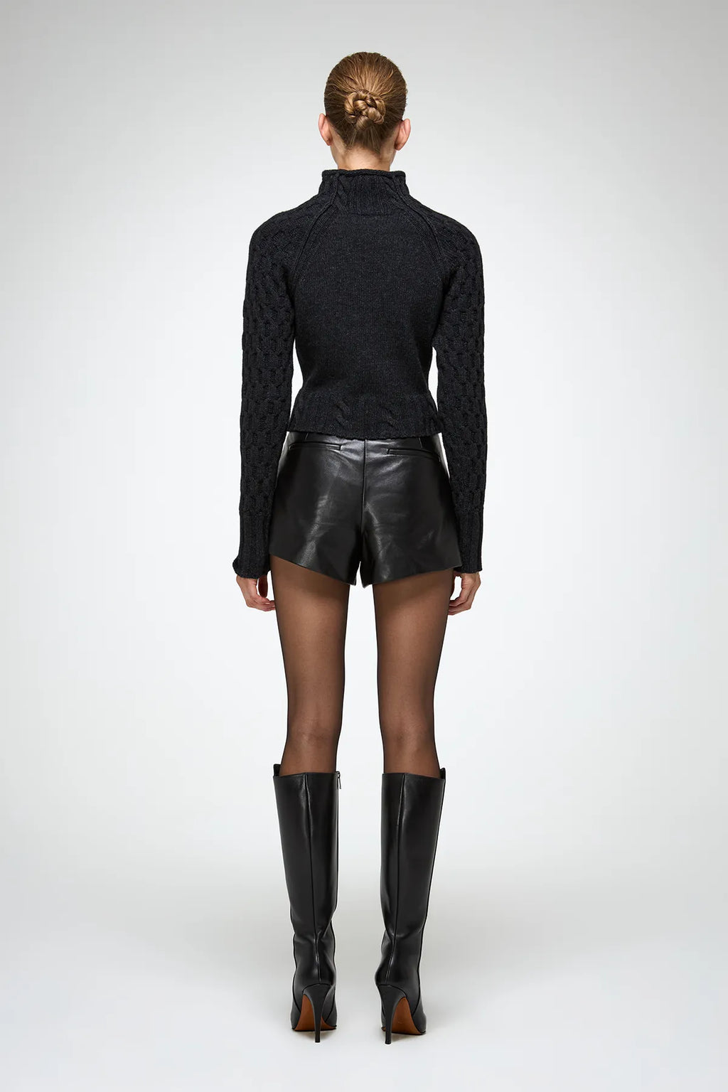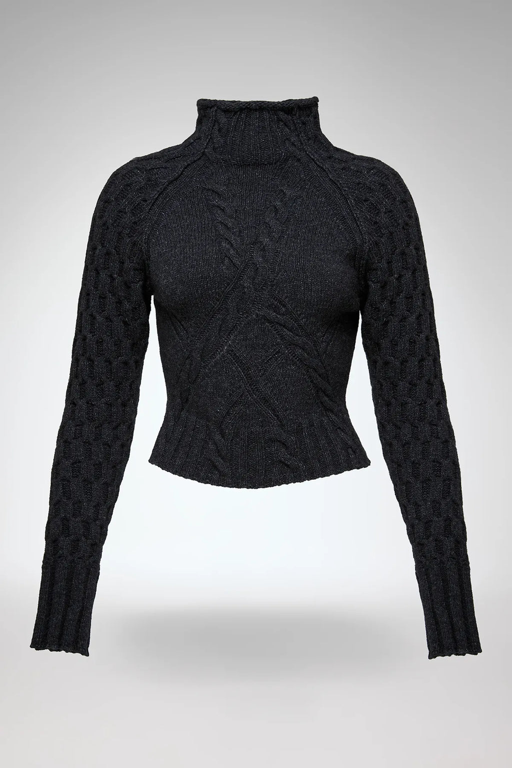 Rollkragenpullover aus Merinowollmischung, normale Passform, lange Ärmel. Strickmuster im Argyle-Stil.