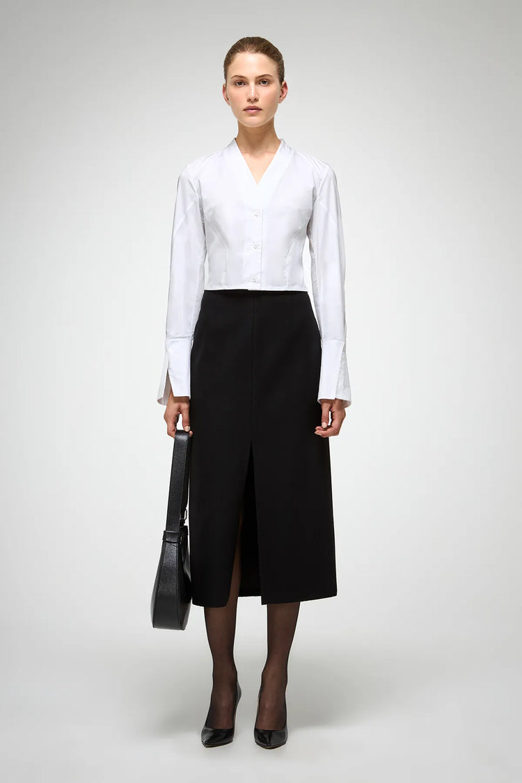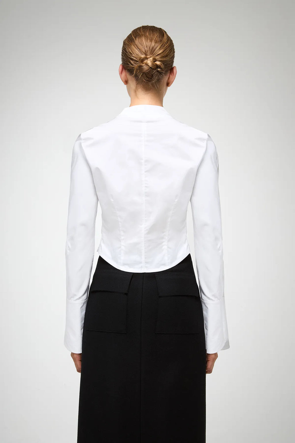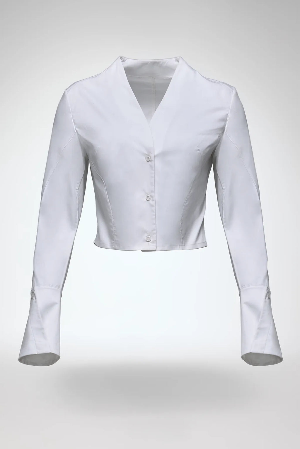 Superkurzes, geknöpftes Hemd mit V-Ausschnitt. 100 % Baumwolle.