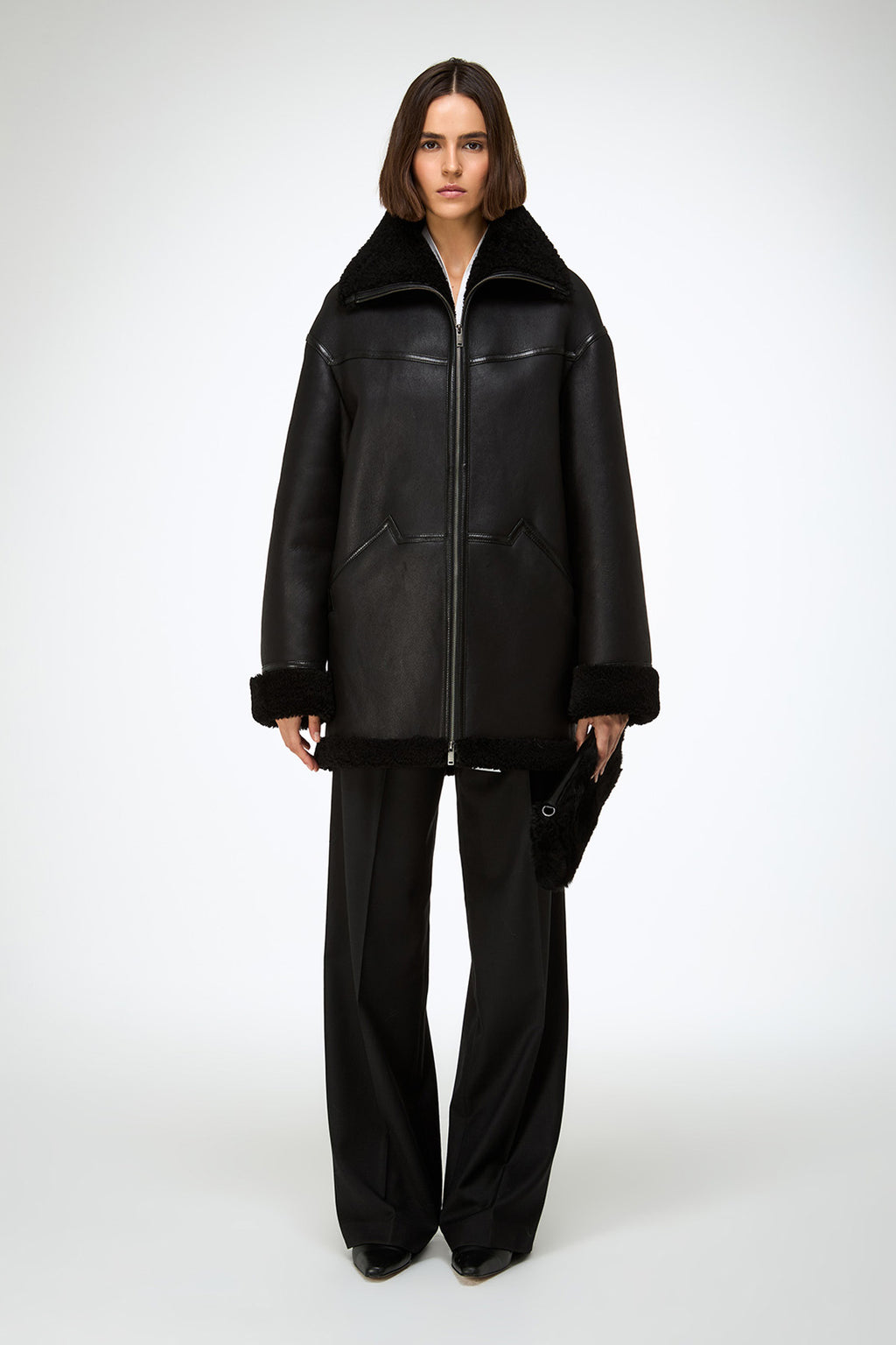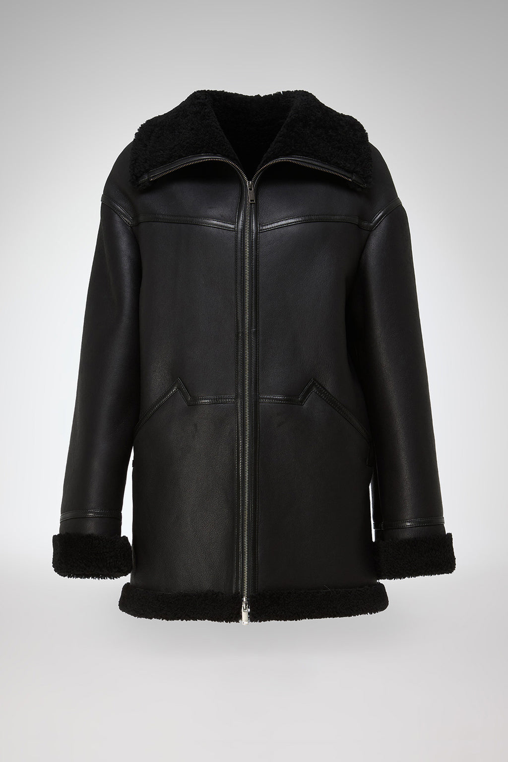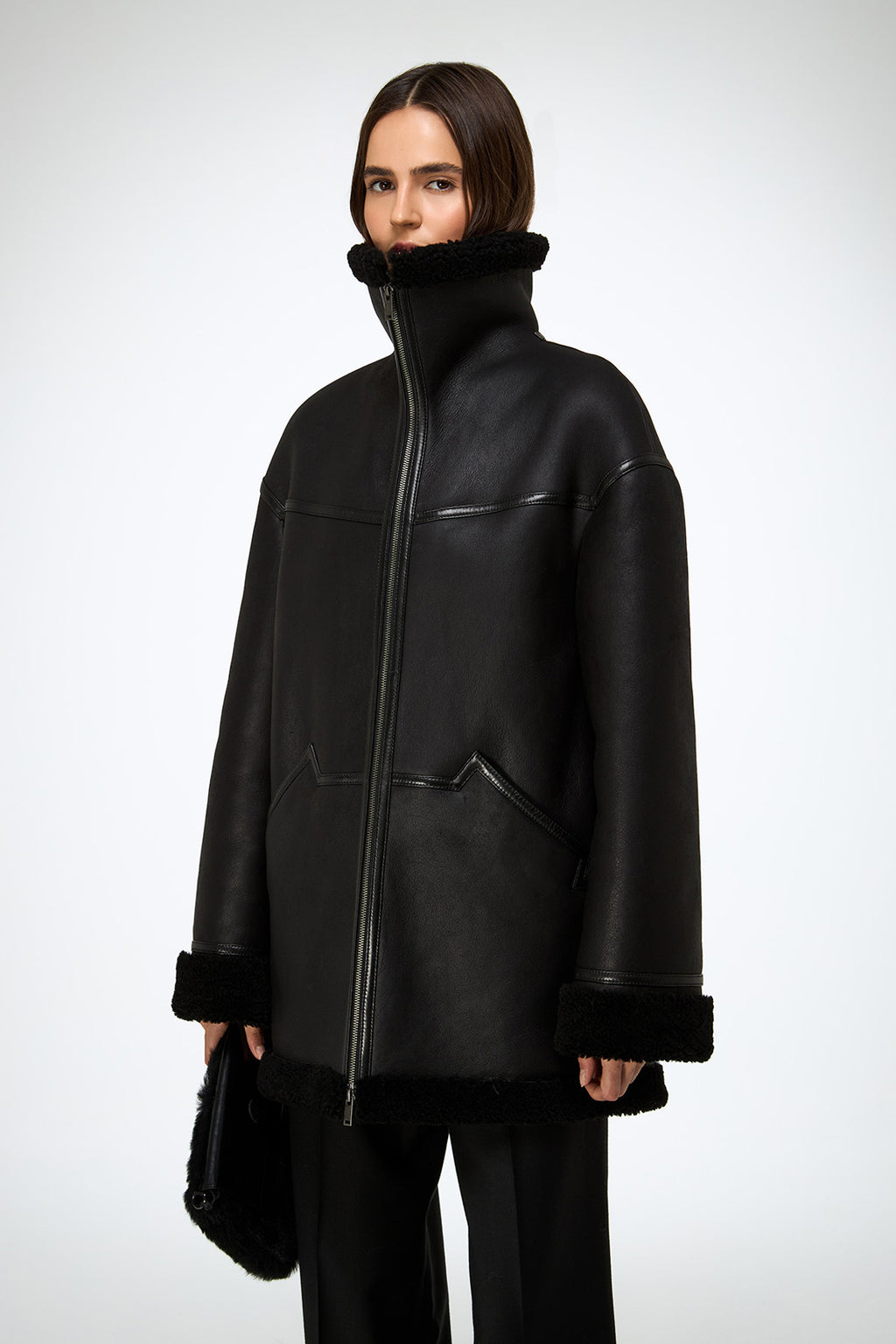 Dina – Schwarzer Lammfellmantel