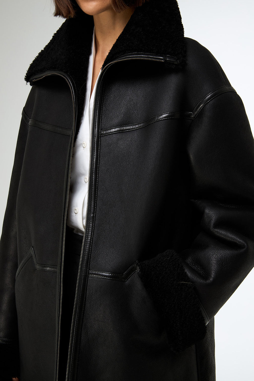 Material: 100 % echtes Lammfell. Wir sind Mitglied der LWG (Leather Working Group), um beste Umweltpraktiken in der Lederindustrie zu unterstützen und dazu beizutragen. Alle unsere Reißverschlüsse sind NATULON® ZIPPER, ein umweltfreundliches Produkt, das aus recycelten PET-Flaschen hergestellt wird. Für Etiketten und Verpackungen verwenden wir ausschließlich biologisch abbaubare Stoffe und Recyclingpapier. Das Model trägt Größe 34 (EU). Modelgröße: Größe 1,77 m / Brustumfang: 85 cm / Taillenumfang: 61 cm / Hüftumfang: 90 cm Modell: KK52848