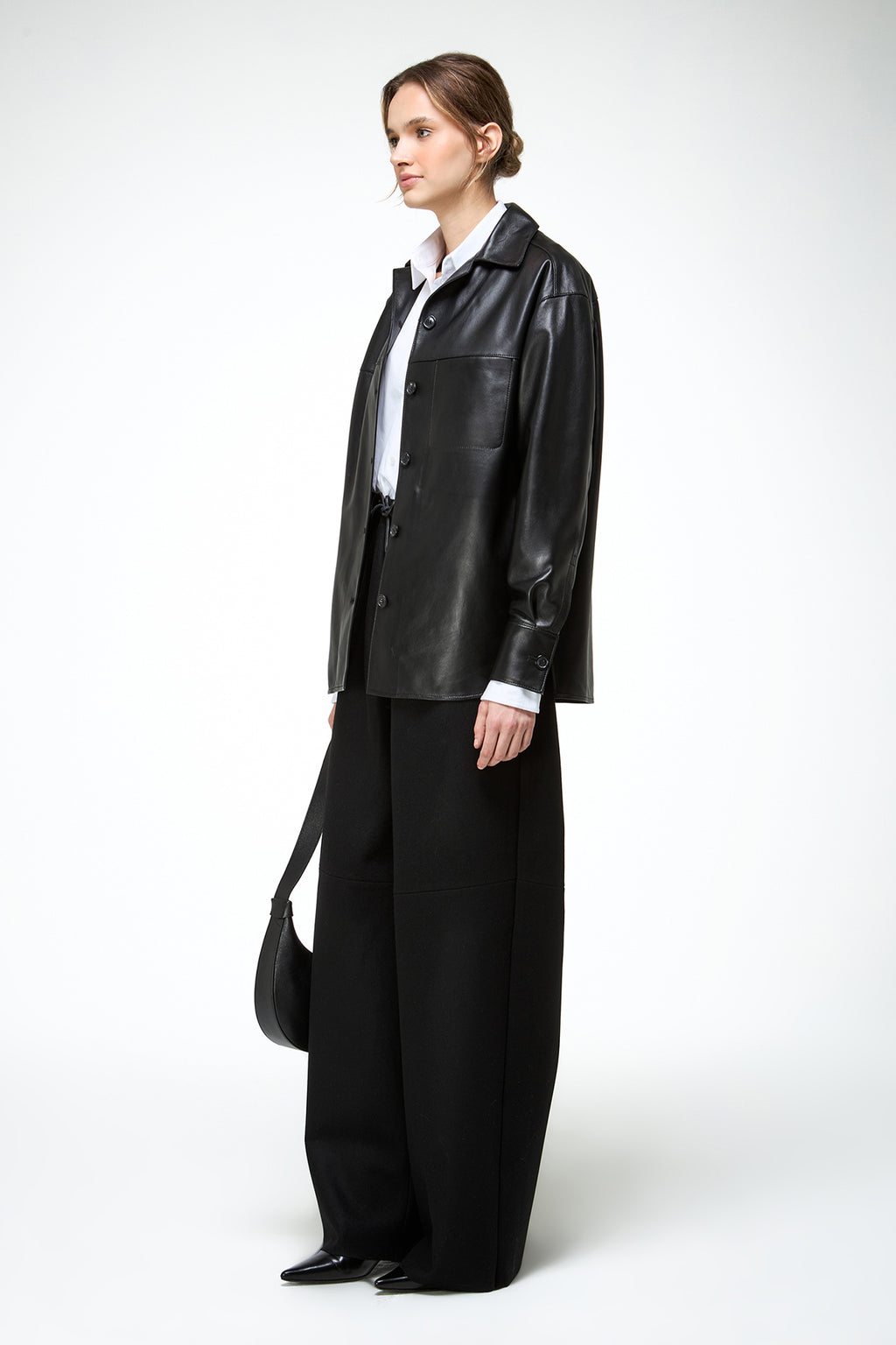 - Da Leder ein natürliches Material ist, muss es in trockener Umgebung atmen. Bitte bewahren Sie Lederbekleidung auf gepolsterten Kleiderbügeln auf und bedecken Sie sie mit einem einfachen Bettlaken oder einer Stoffmanteltasche.