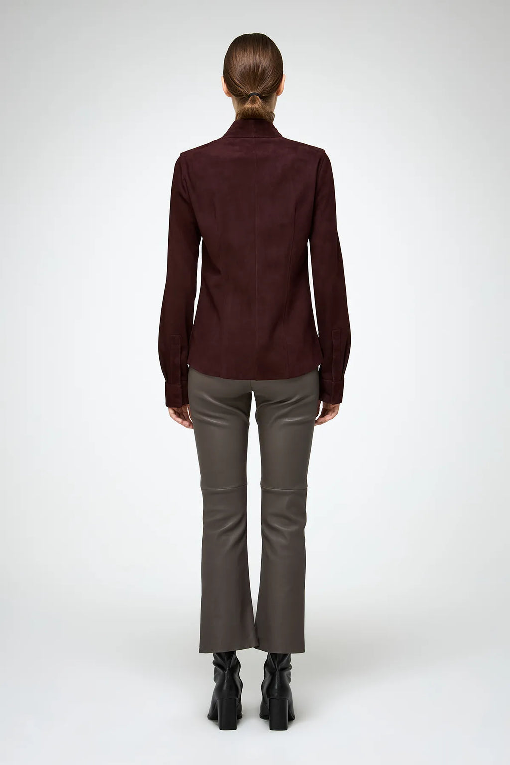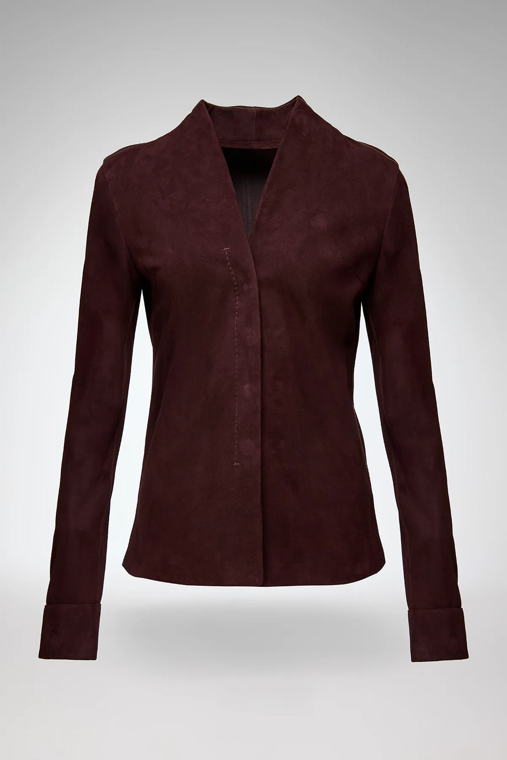 Hemd aus 100 % Lammleder mit V-Ausschnitt und verdecktem Druckknopfverschluss