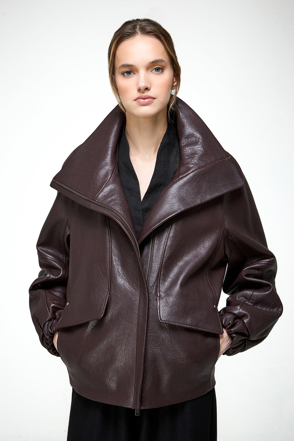 Titiana – Dunkle Bordeaux-Lederjacke